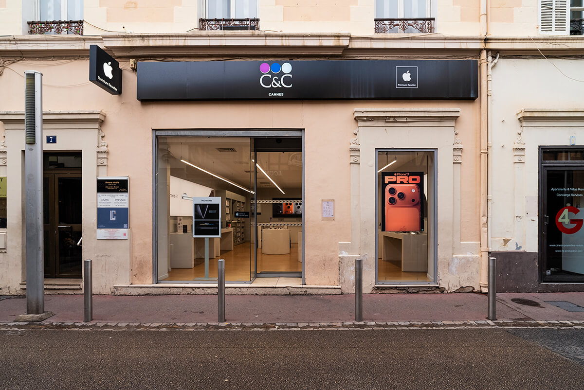 Notre boutique C&C à Cannes est bien plus qu’un simple atelier de réparation. Chez C&C, vous entrez dans un univers entièrement dédié à la marque Apple :